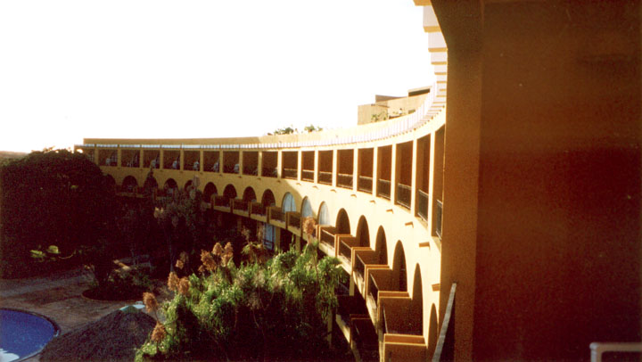 A lot of people hate this place because you can see it from the archeological site. It's really not that intrusive, but it would have helped if they had toned down the color a bit and not added this 3rd floor we stayed on. There was a great observation deck on top of the place with telescopes and no people. In the evening, thousands of bats poured past the place into the twilight. Later - there were a lot of nightjars and goatsuckers and bats working the hotel lights for insect smorgasbord. I liked the place.