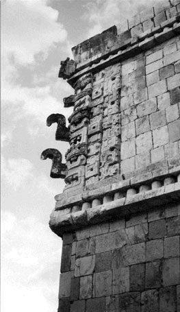 This place is amazing. These faces with their elephant-like trunks are representations of the rain god Chaak. Here at Uxmal, the trunks turn up - at Kabah they're shaped exactly the same but they turn down. I'm wondering if it has more to do with the reconstruction done or the original design. I'll consult Catherwood and find out, and post a comparison link here if my guess pans out.